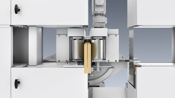 In center cut operating mode, the workpieces are continuously centered in the feed unit. This ensures that dimensional tolerances in the input material are evenly distributed to the outer workpieces. Missing parts due to undersize are avoided and a consistently high material yield is guaranteed. You can switch to separation cut mode at any time. The SOLID SPLIT B 1250 optimizes according to your wishes.