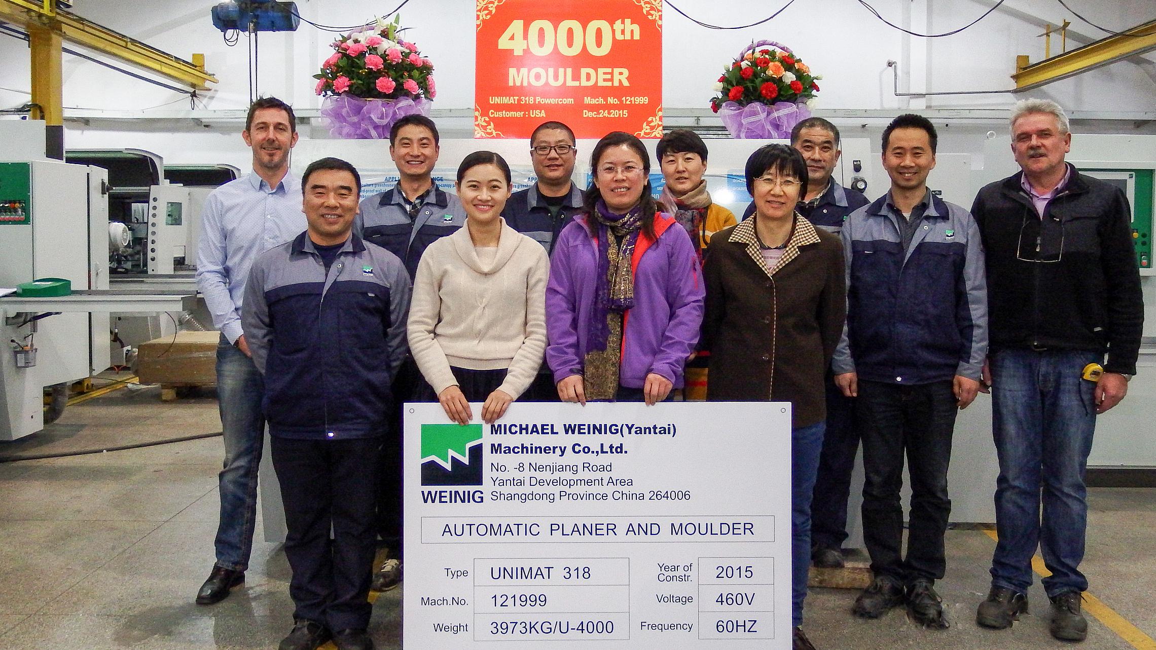 The 4000th moulder sets a milestone in Weinig’s successful activities in China. Weinig established its site in Yantai 21 years ago, which put the company among the German pioneers of the sector in the country. In 1997, a factory was built and the production of standard machines for planing and profiling began. In 2010, the facilities were extended to include the production of window angle systems. Weinig is now firmly established in China with production, sales and services.